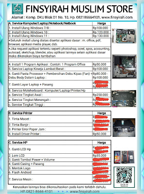 Update Harga Service Toko Offline Finsyirah Computer – Rumah Service